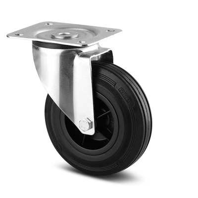 Sold By : Ro8Roata pivotanta din polipropilena, fixare pe placa, calea de rulare din cauciuc negru plin, D 80 mm