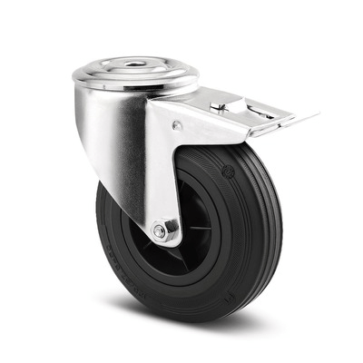 Sold By : Ro8Roata pivotanta cu blocare totala din polipropilena, fixare pe bolt, calea de rulare din cauciuc plin negru, D 80 mm